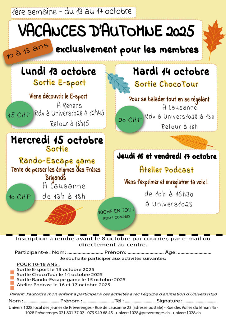 Inscriptions auprès de l’équipe d’animation, coupon-réponse à renvoyer.